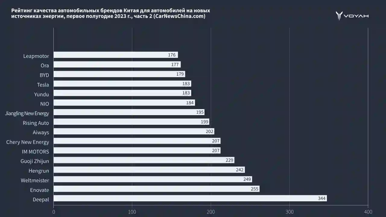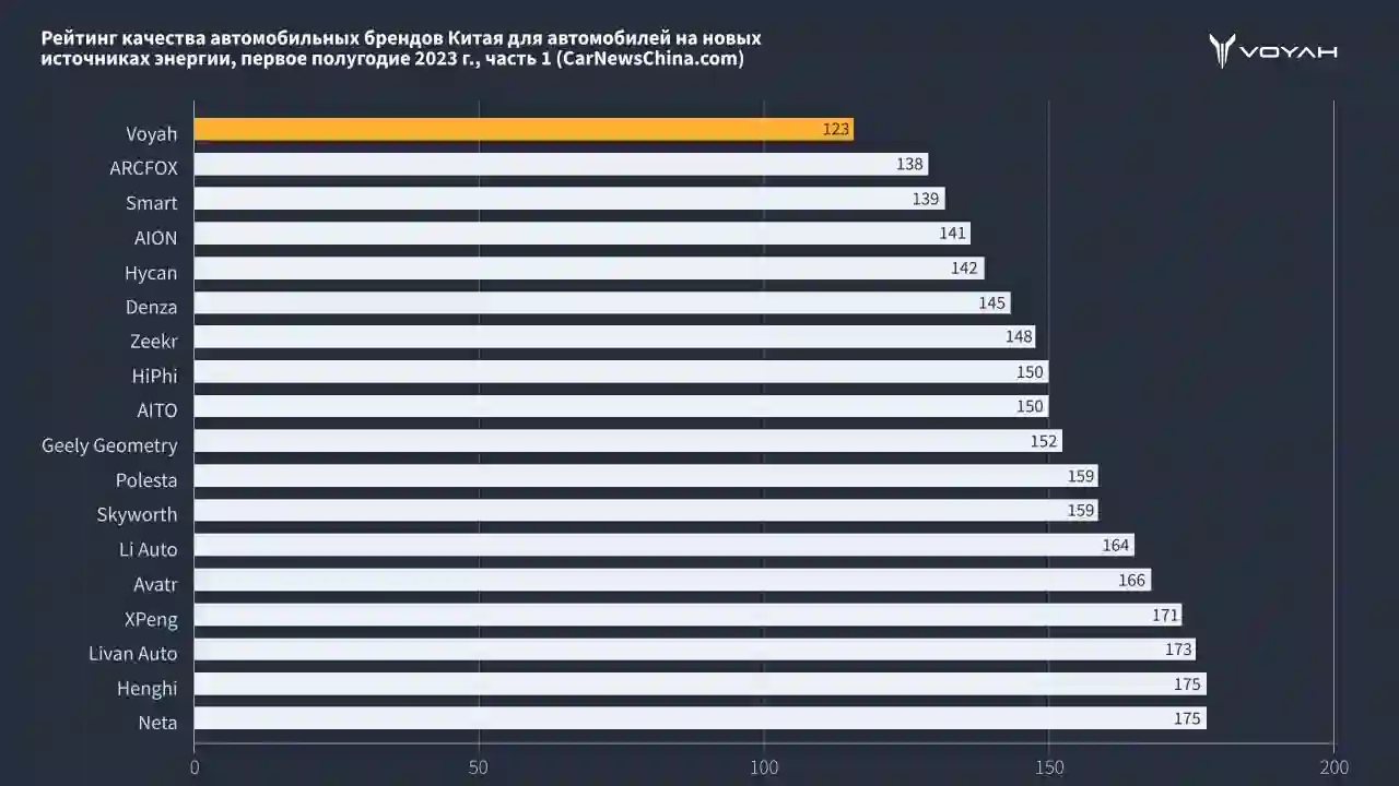 По результатам исследования, премиальный бренд электромобилей VOYAH полноправно возглавил рейтинг надежности электромобилей, получив наименьшее количество негативных потребительских отзывов. Общий индекс, характеризующий безупречное качество продукции VOYAH, составил 123, что на 15 пунктов меньше, чем у ближайшего конкурента. А по сравнению с аутсайдером разрыв составил внушительный 221 балл. Эксперты Китайской сети качества отметили электрокары VOYAH, как наиболее адаптированные для повседневной эксплуатации, имеющие минимальные риски появления дефектов и обладающие высочайшим уровнем надежности и безопасности.