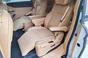 Про салон можно написать небольшую книгу, но мы постараемся вкратце. Капитанские кресла второго ряда — это нечто. Они напоминают бизнес-класс в самолетах. Можно ехать практически лежа. Третий ряд тоже очень приличный, хотя отформован под два седалища, не под три. Отделка сидений — то ли кожа, то ли очень качественная экокожа. С перфорацией, красиво простроченная.
