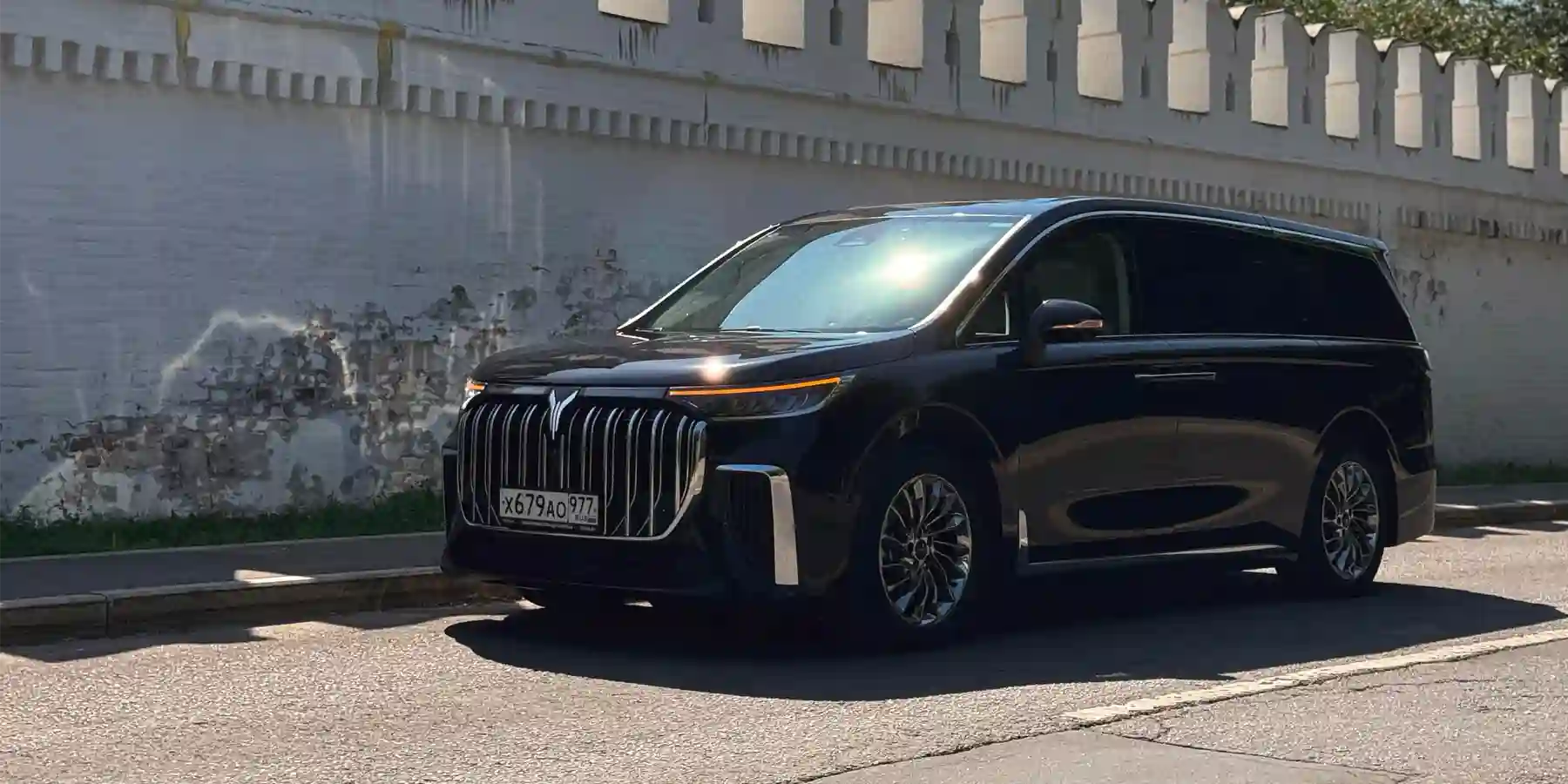 Так и вышло с молодым брендом VOYAH — и его минивэном МЕЧТА / DREAM. Длиннющий (5315 мм) и широченный (1985 мм) автомобиль выглядит сильно компактнее своих габаритов, но при этом очень внушительно. Не считая гигантской хромированной решетки радиатора, в целом дизайн довольно-таки лаконичный, без пошлости и китча. Вышло симпатично — и даже изящно.
