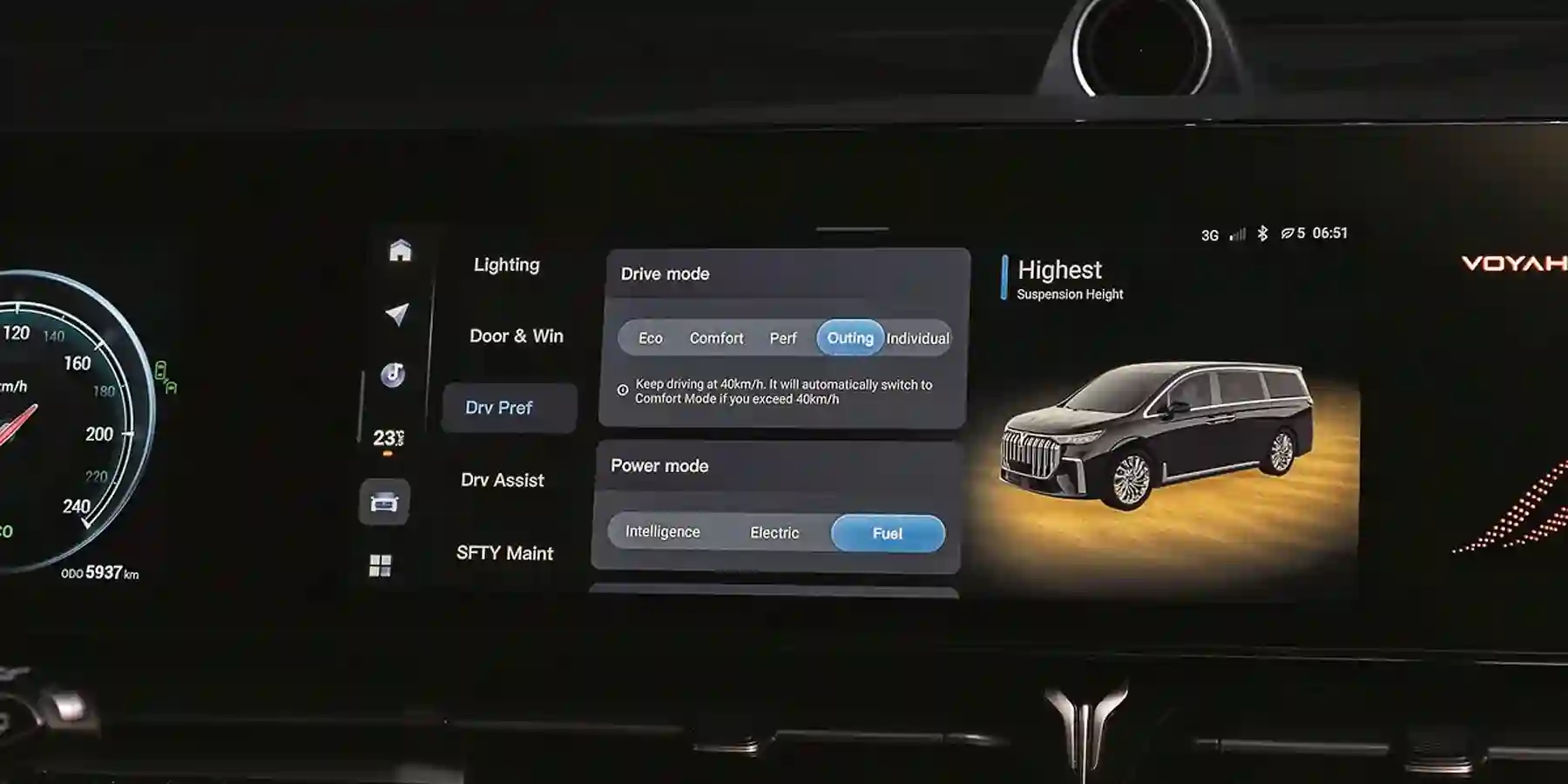 Отпираешь автомобиль — в салоне оживают экраны. Если надавить педаль тормоза, загорится надпись о готовности к старту. Переключайся на Drive — и вперед. Но я поехал отнюдь не скоро. Целых полчаса исследовал обширные глубины меню, и появилось ощущение, что буду пилотировать не максивэн Voyah МЕЧТА / DREAM, а самолет Boeing Dreamliner.