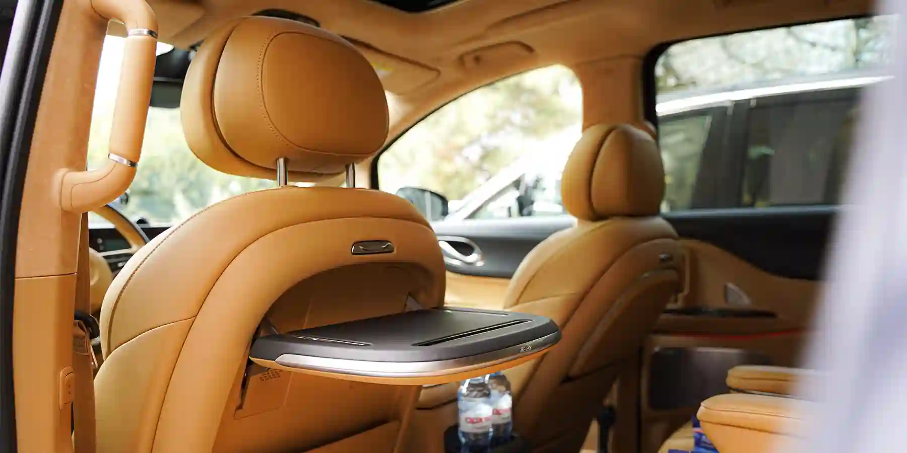 В 1,5-часовом пути у нас была возможность насладиться современными технологиями и развлечениями в салоне VOYAH FREE Sport Edition благодаря дисплею подъемной панели приборов с тремя 12,3-дюймовыми тачскринами. Здесь также можно адаптировать пространство под себя, превращая салон в передвижной офис или лаунж-зону.